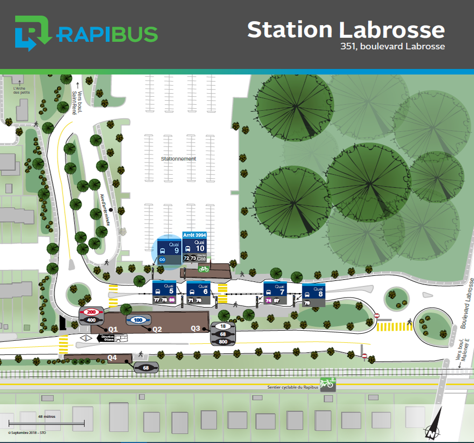 The Transcollines stop is located at the STO’s local platform number 9. The stop serves route 940.